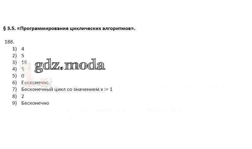 ГДЗ решение к заданию № 188 Информатика 8 класс рабочая тетрадь Босова Л.Л. Бином 2017 Часть 1, Часть 2 ФГОС бесплатно на гдз.мода!