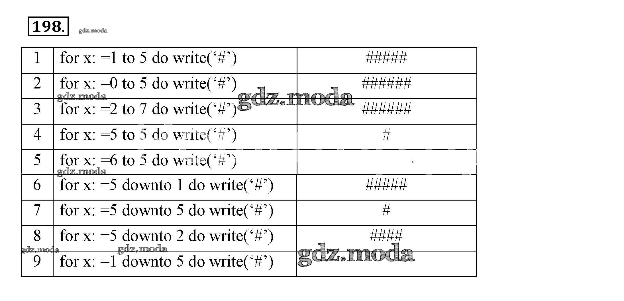 ГДЗ решение к заданию № 198 Информатика 8 класс рабочая тетрадь Босова Л.Л. Бином 2017 Часть 1, Часть 2 ФГОС бесплатно на гдз.мода!