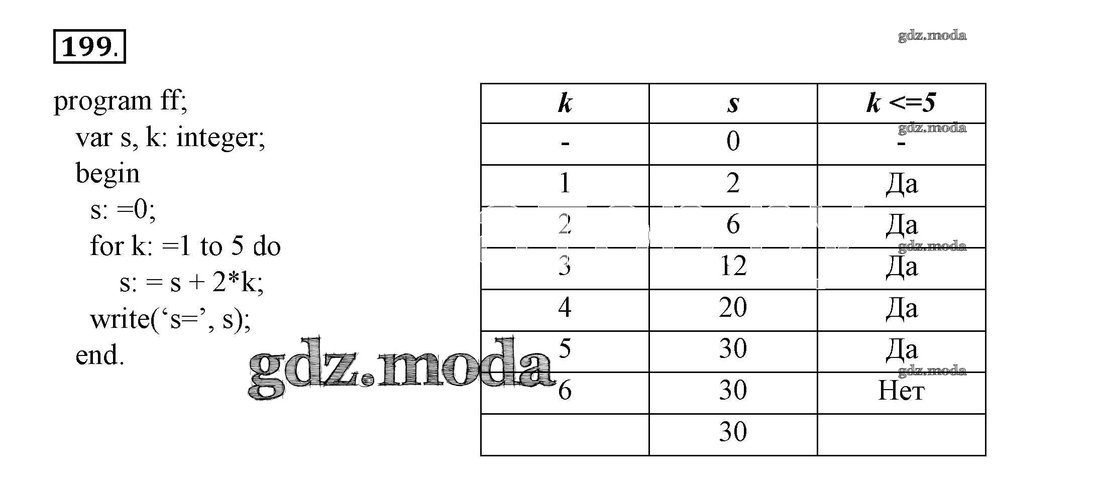 ГДЗ решение к заданию № 199 Информатика 8 класс рабочая тетрадь Босова Л.Л. Бином 2017 Часть 1, Часть 2 ФГОС бесплатно на гдз.мода!