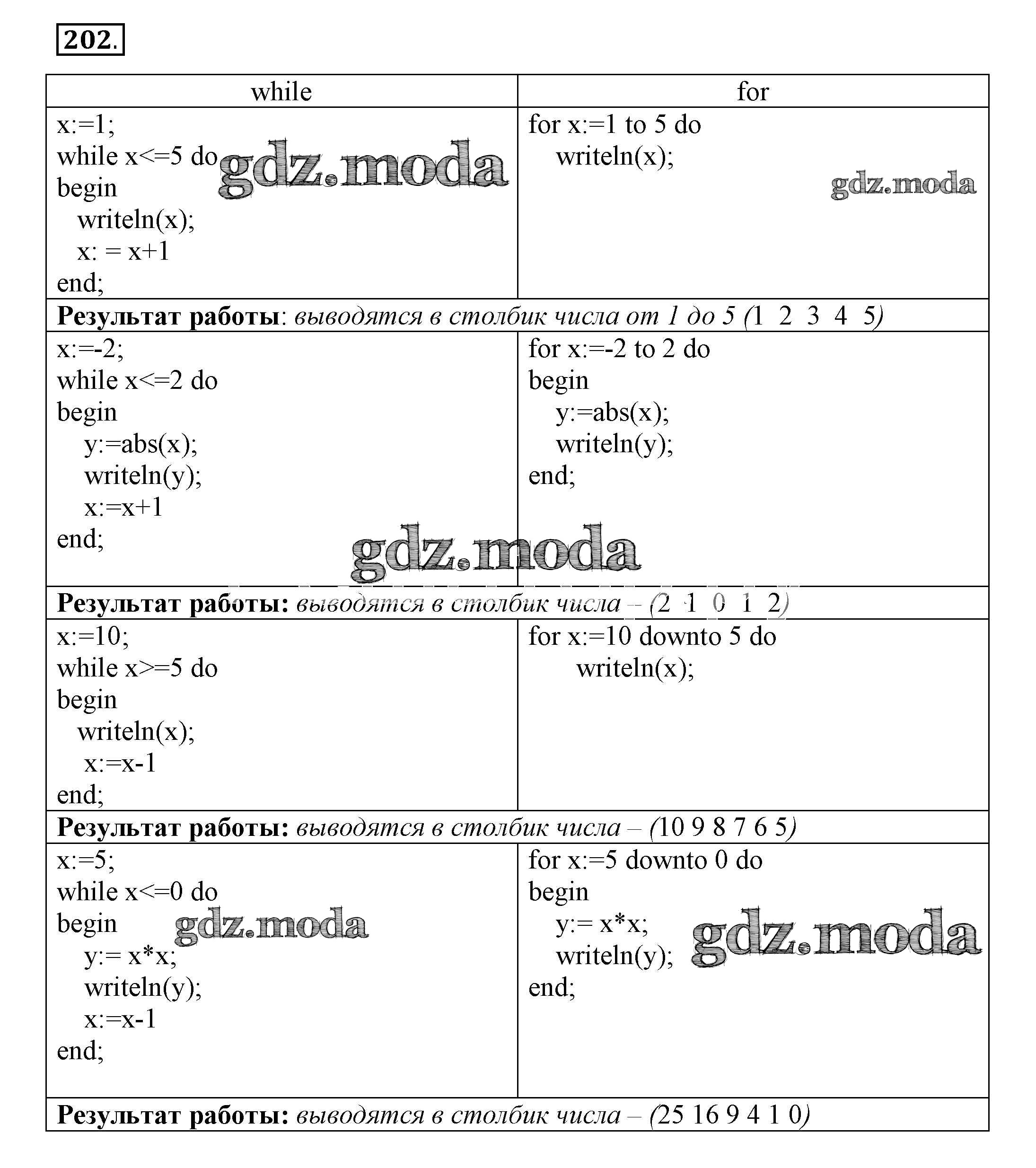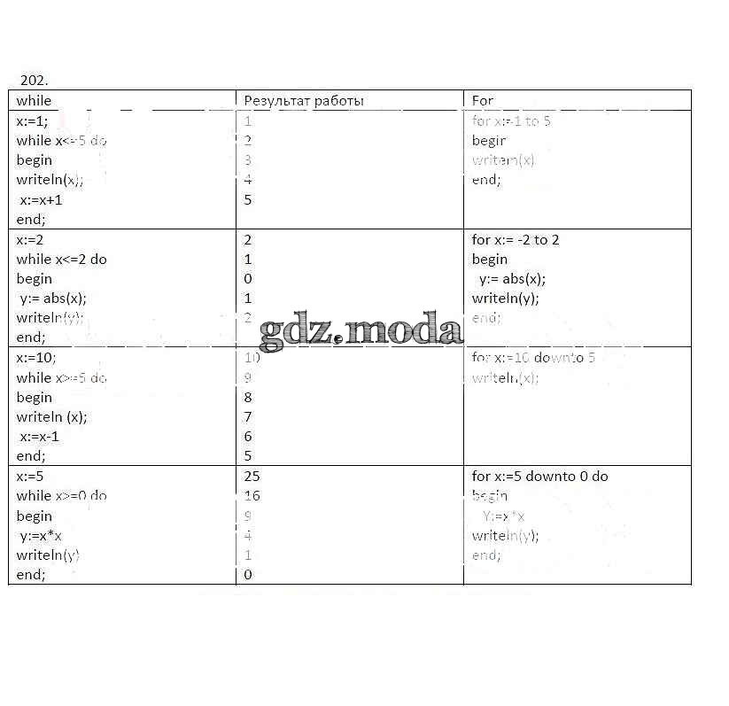 ГДЗ решение к заданию № 202 Информатика 8 класс рабочая тетрадь Босова Л.Л. Бином 2017 Часть 1, Часть 2 ФГОС бесплатно на гдз.мода!