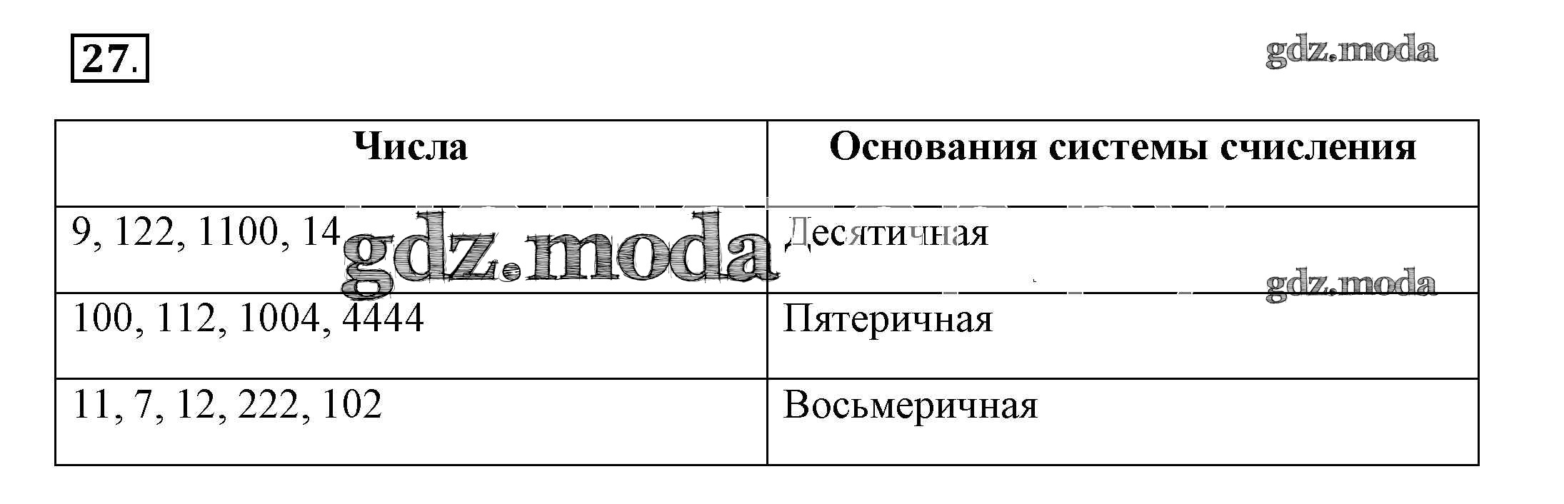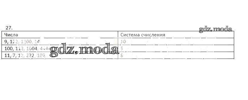 ГДЗ решение к заданию № 27 Информатика 8 класс рабочая тетрадь Босова Л.Л. Бином 2017 Часть 1, Часть 2 ФГОС бесплатно на гдз.мода!