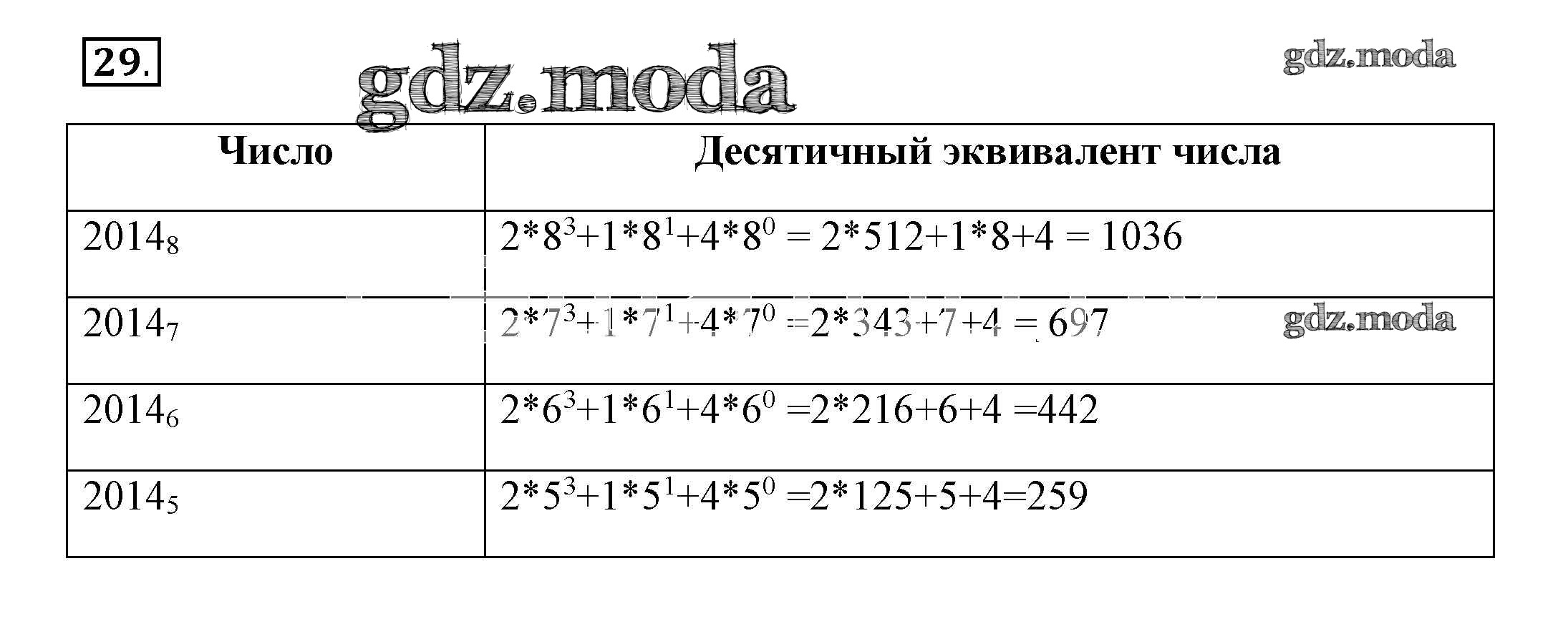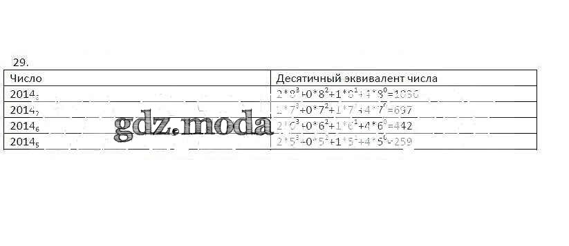 ГДЗ решение к заданию № 29 Информатика 8 класс рабочая тетрадь Босова Л.Л. Бином 2017 Часть 1, Часть 2 ФГОС бесплатно на гдз.мода!