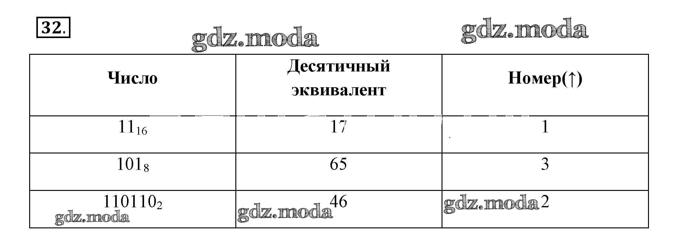 ГДЗ решение к заданию № 32 Информатика 8 класс рабочая тетрадь Босова Л.Л. Бином 2017 Часть 1, Часть 2 ФГОС бесплатно на гдз.мода!