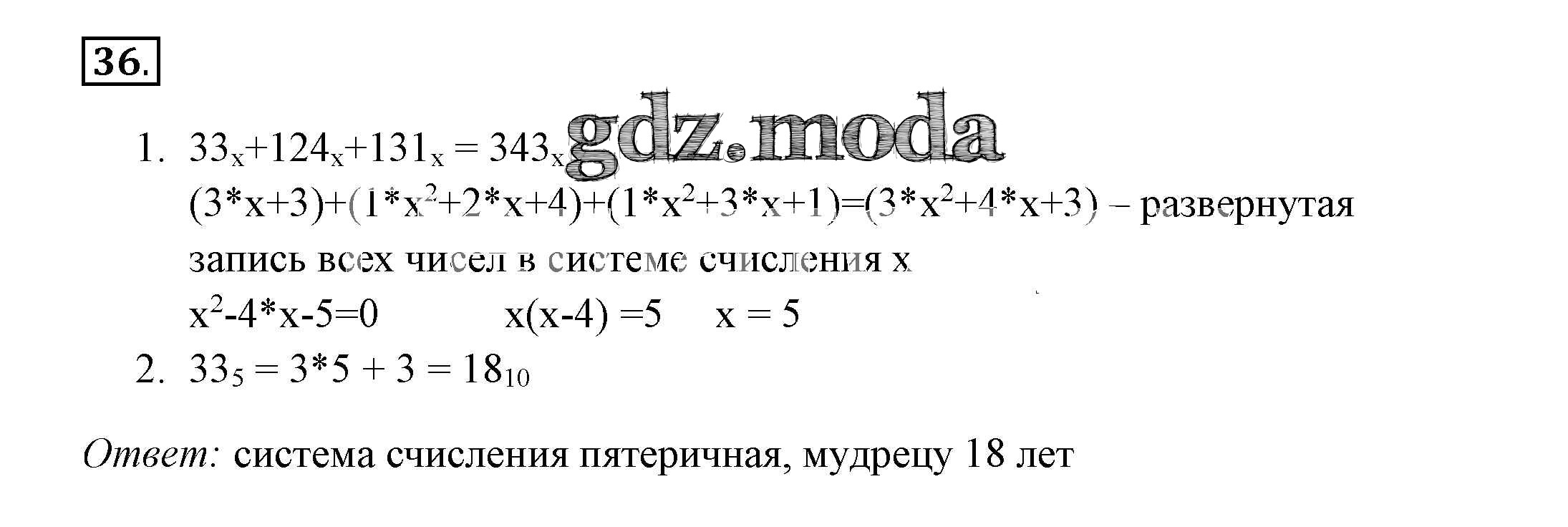 ГДЗ решение к заданию № 36 Информатика 8 класс рабочая тетрадь Босова Л.Л. Бином 2017 Часть 1, Часть 2 ФГОС бесплатно на гдз.мода!