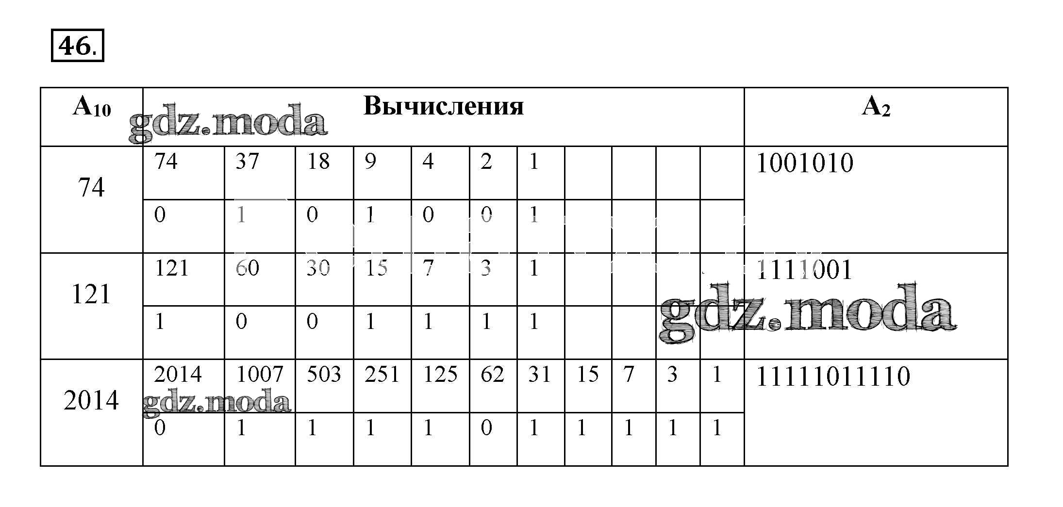 ГДЗ решение к заданию № 46 Информатика 8 класс рабочая тетрадь Босова Л.Л. Бином 2017 Часть 1, Часть 2 ФГОС бесплатно на гдз.мода!