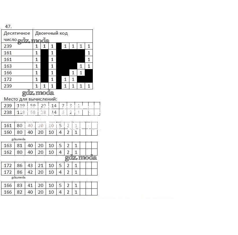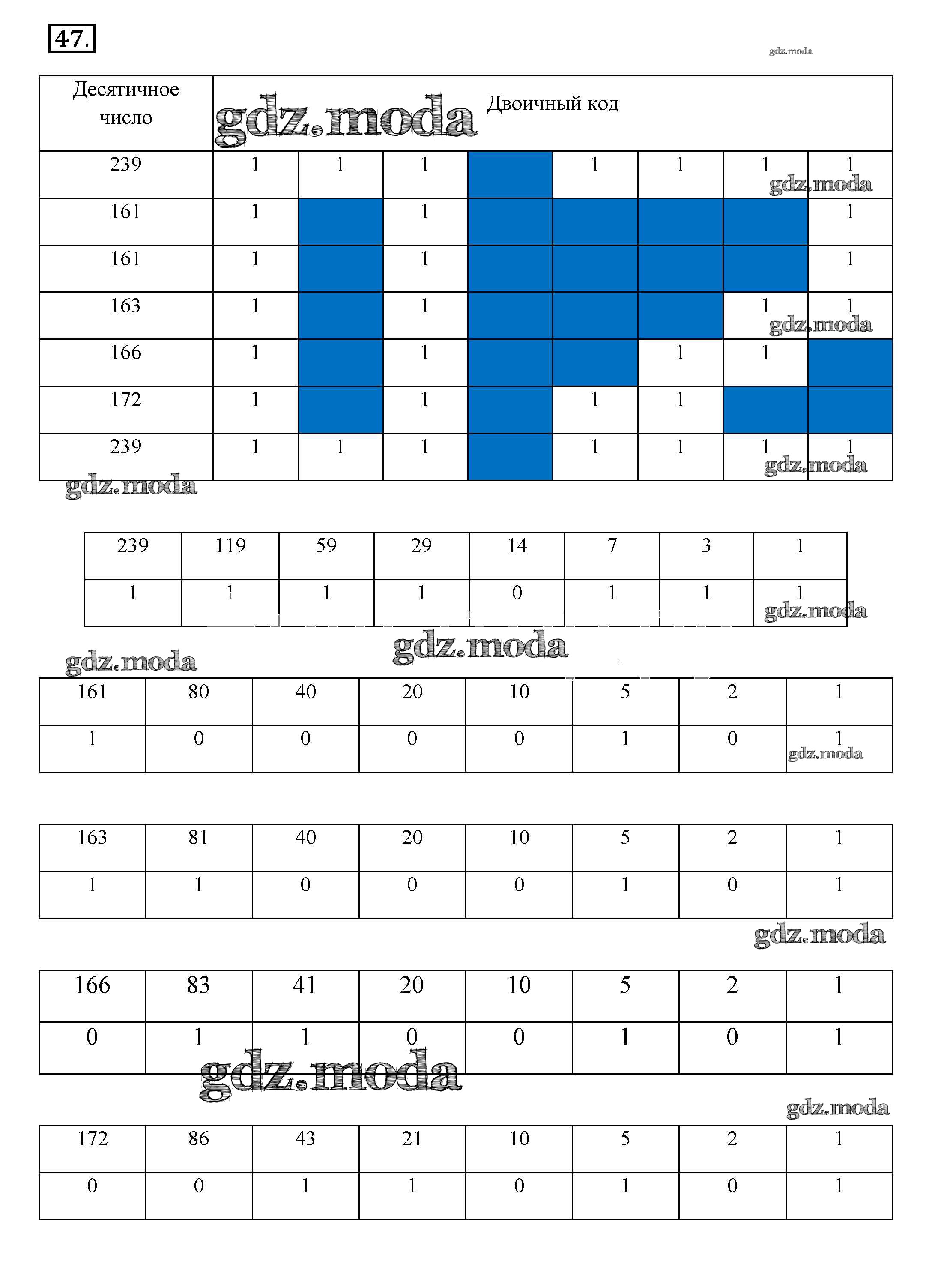 ГДЗ решение к заданию № 47 Информатика 8 класс рабочая тетрадь Босова Л.Л. Бином 2017 Часть 1, Часть 2 ФГОС бесплатно на гдз.мода!