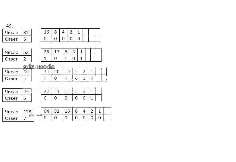 ГДЗ решение к заданию № 49 Информатика 8 класс рабочая тетрадь Босова Л.Л. Бином 2017 Часть 1, Часть 2 ФГОС бесплатно на гдз.мода!