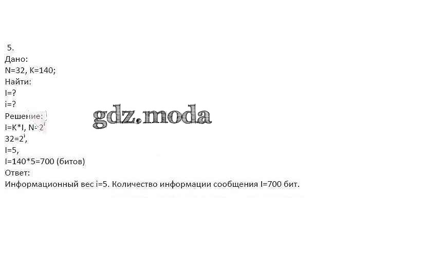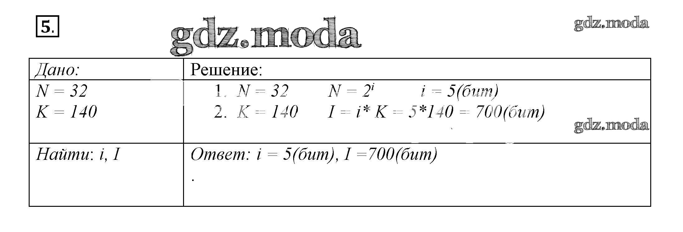 ГДЗ решение к заданию № 5 Информатика 8 класс рабочая тетрадь Босова Л.Л. Бином 2017 Часть 1, Часть 2 ФГОС бесплатно на гдз.мода!