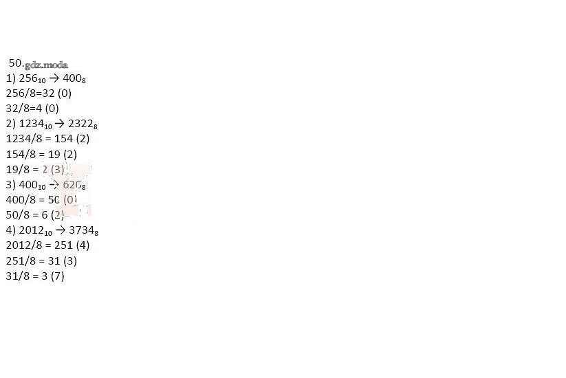 ГДЗ решение к заданию № 50 Информатика 8 класс рабочая тетрадь Босова Л.Л. Бином 2017 Часть 1, Часть 2 ФГОС бесплатно на гдз.мода!