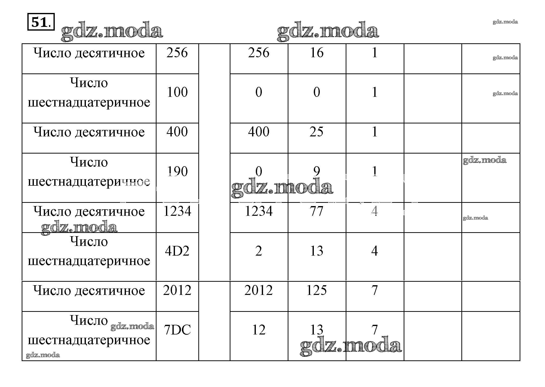 ГДЗ решение к заданию № 51 Информатика 8 класс рабочая тетрадь Босова Л.Л. Бином 2017 Часть 1, Часть 2 ФГОС бесплатно на гдз.мода!