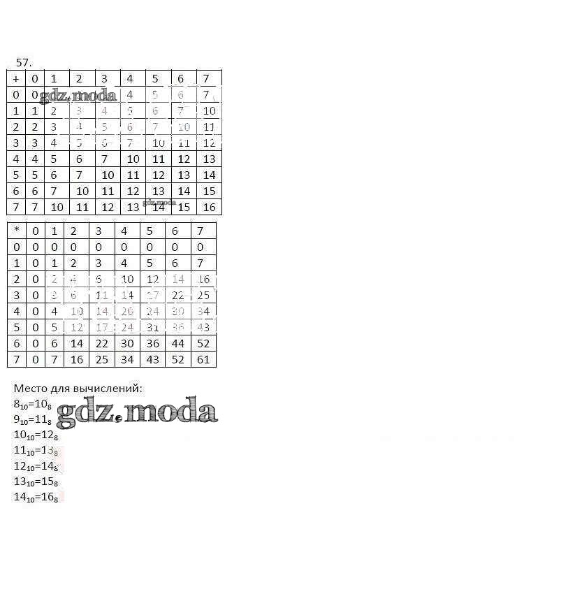 ГДЗ решение к заданию № 57 Информатика 8 класс рабочая тетрадь Босова Л.Л. Бином 2017 Часть 1, Часть 2 ФГОС бесплатно на гдз.мода!