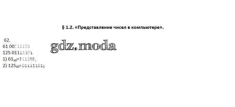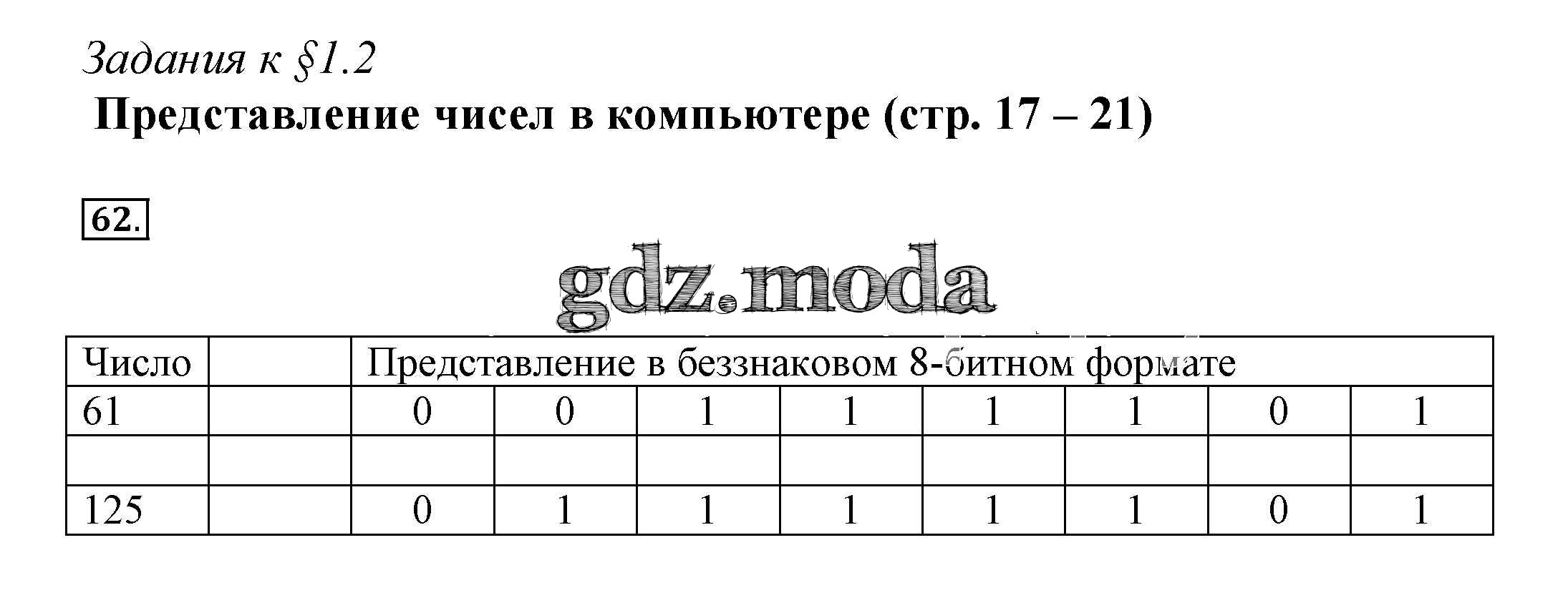 ГДЗ решение к заданию № 62 Информатика 8 класс рабочая тетрадь Босова Л.Л. Бином 2017 Часть 1, Часть 2 ФГОС бесплатно на гдз.мода!