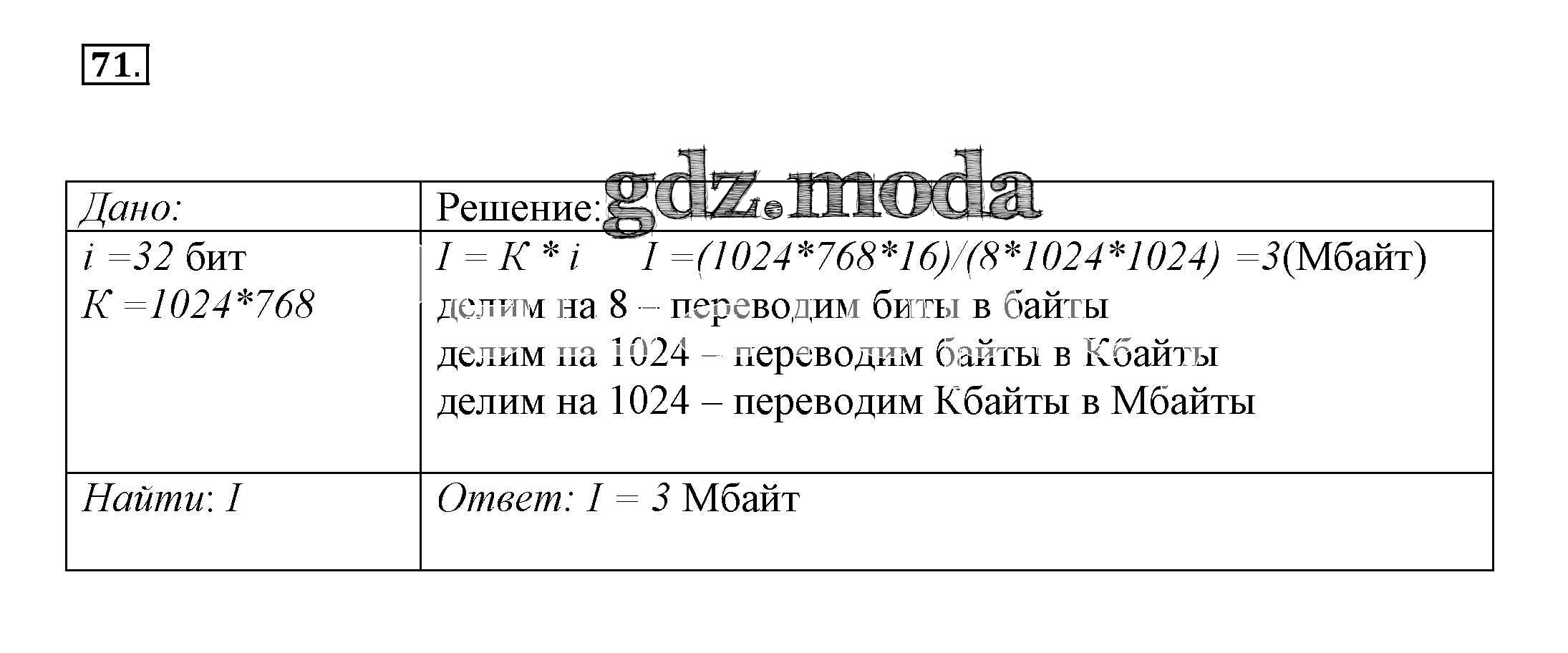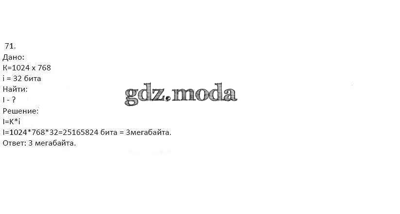 ГДЗ решение к заданию № 71 Информатика 8 класс рабочая тетрадь Босова Л.Л. Бином 2017 Часть 1, Часть 2 ФГОС бесплатно на гдз.мода!