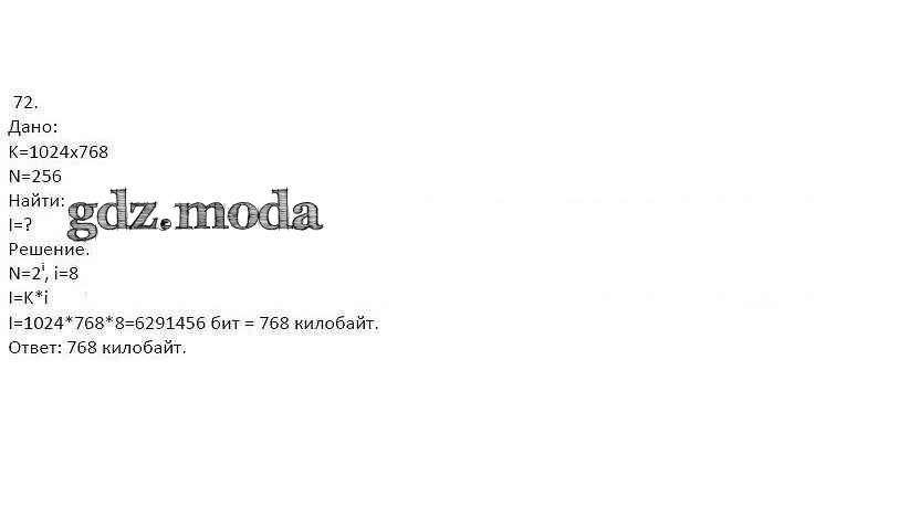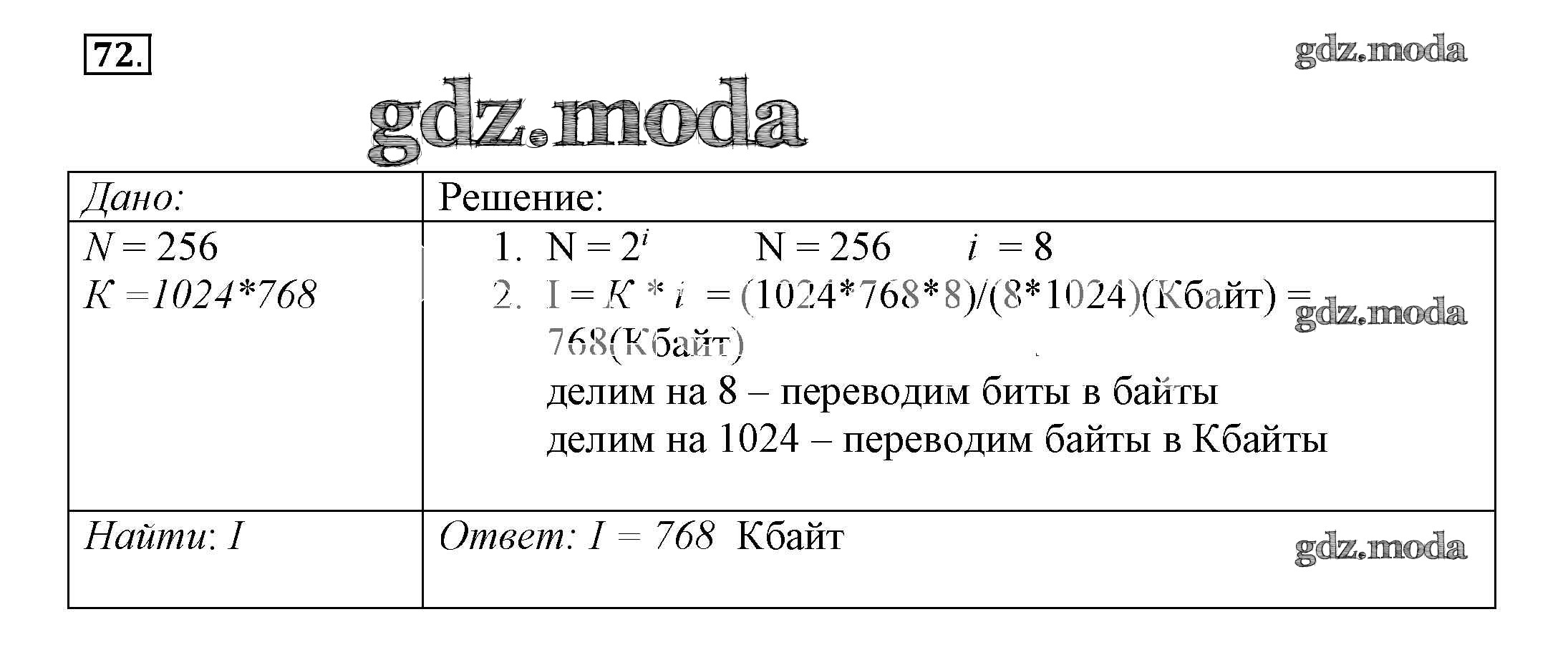 ГДЗ решение к заданию № 72 Информатика 8 класс рабочая тетрадь Босова Л.Л. Бином 2017 Часть 1, Часть 2 ФГОС бесплатно на гдз.мода!