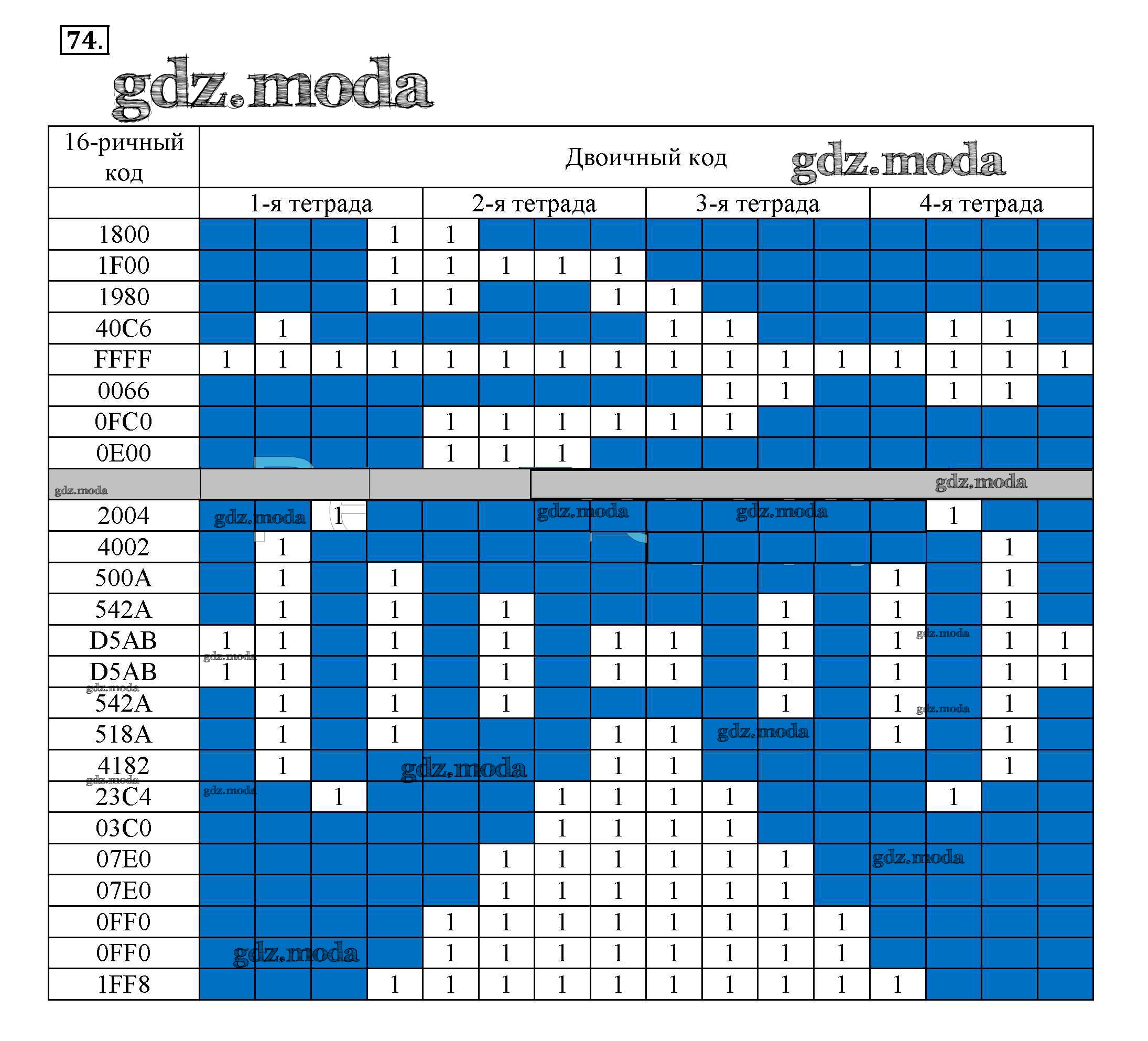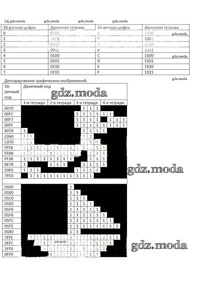 ГДЗ решение к заданию № 74 Информатика 8 класс рабочая тетрадь Босова Л.Л. Бином 2017 Часть 1, Часть 2 ФГОС бесплатно на гдз.мода!