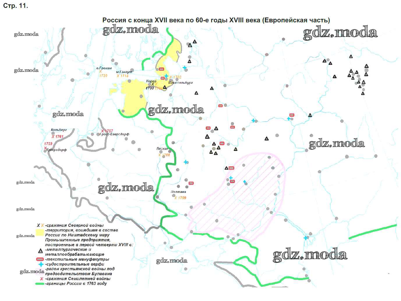 ОТВЕТ на задание № 11 Атлас по Истории 8 класс Чугунова