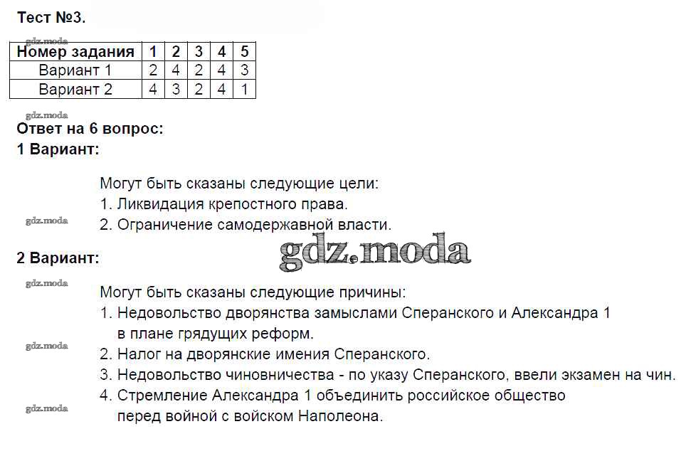 ОТВЕТ на задание № 3 Контрольно-измерительные материалы (КИМ) по Истории 8 класс Смирнов