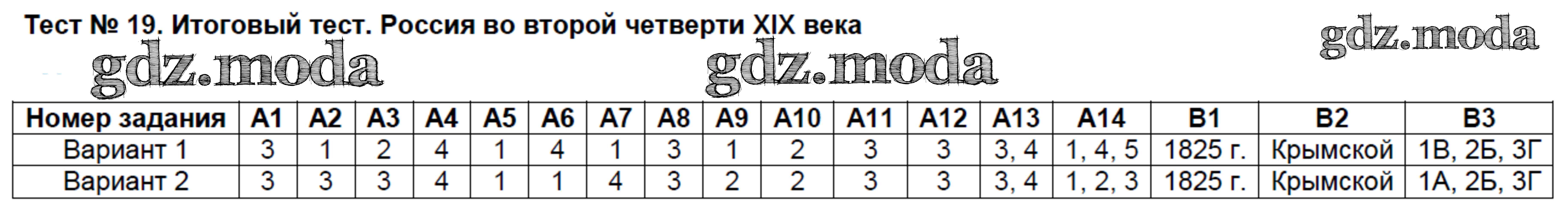 ГДЗ решение к заданию № 19 История России 8 класс КИМ Волкова К.В. ВАКО 2017 ФГОС бесплатно на гдз.мода!