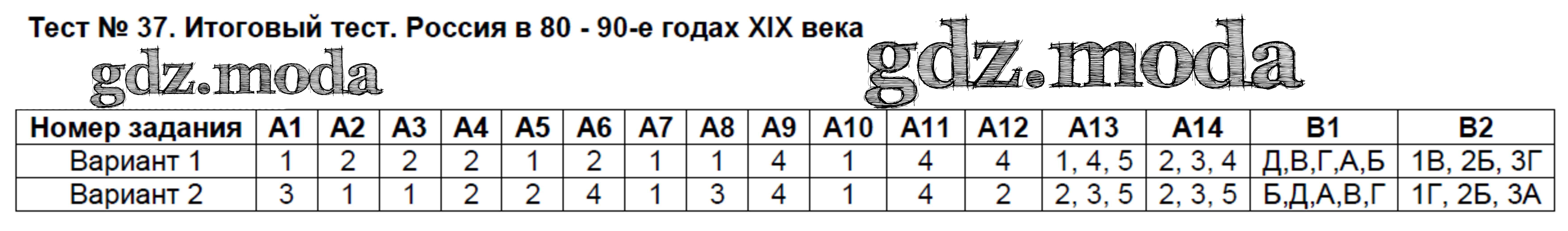 ГДЗ решение к заданию № 37 История России 8 класс КИМ Волкова К.В. ВАКО 2017 ФГОС бесплатно на гдз.мода!