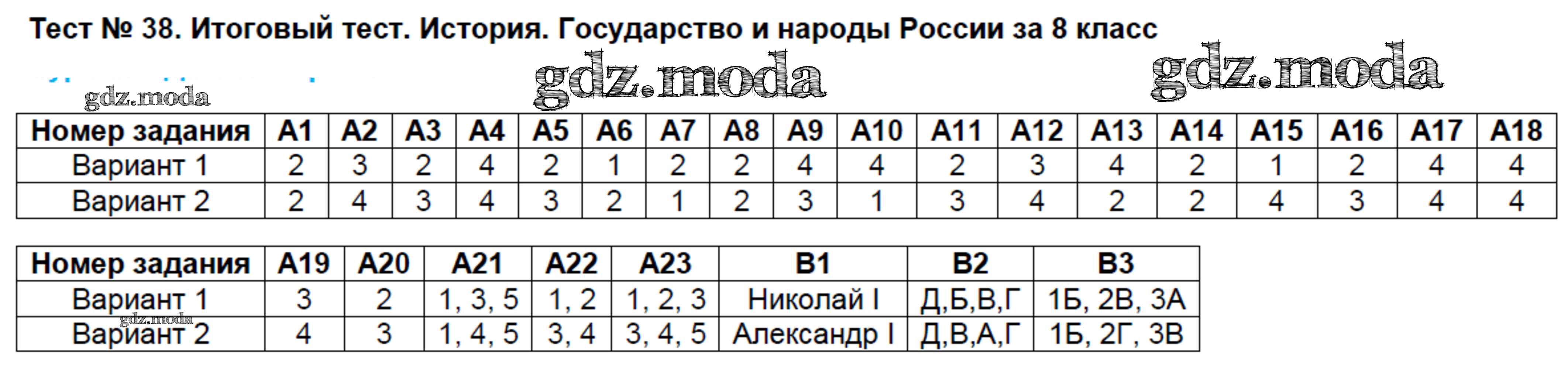 ГДЗ решение к заданию № 38 История России 8 класс КИМ Волкова К.В. ВАКО 2017 ФГОС бесплатно на гдз.мода!