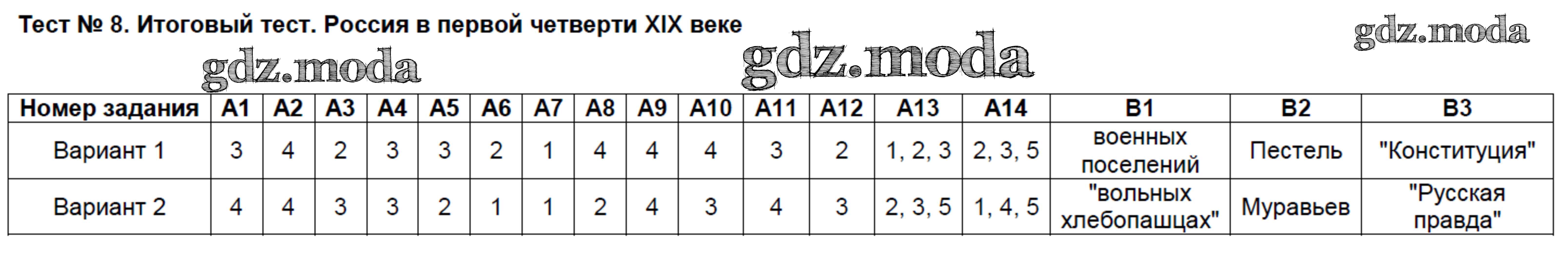 ГДЗ решение к заданию № 8 История России 8 класс КИМ Волкова К.В. ВАКО 2017 ФГОС бесплатно на гдз.мода!