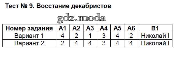 ГДЗ решение к заданию № 9 История России 8 класс КИМ Волкова К.В. ВАКО 2017 ФГОС бесплатно на гдз.мода!
