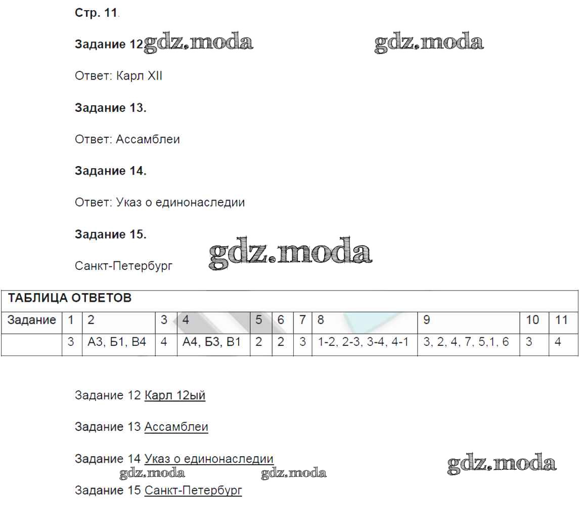 ГДЗ решение к заданию № 11 История 8 класс контрольные работы Артасов И.А. Просвещение 2016 ФГОС бесплатно на гдз.мода!