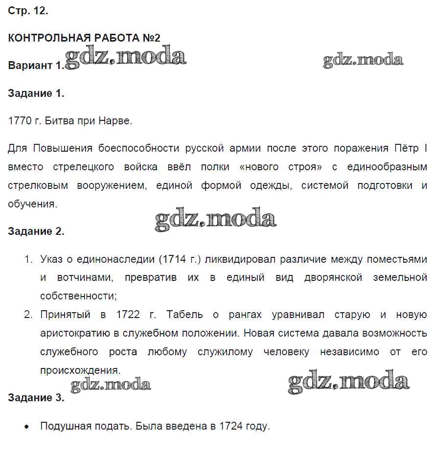ГДЗ решение к заданию № 12 История 8 класс контрольные работы Артасов И.А. Просвещение 2016 ФГОС бесплатно на гдз.мода!