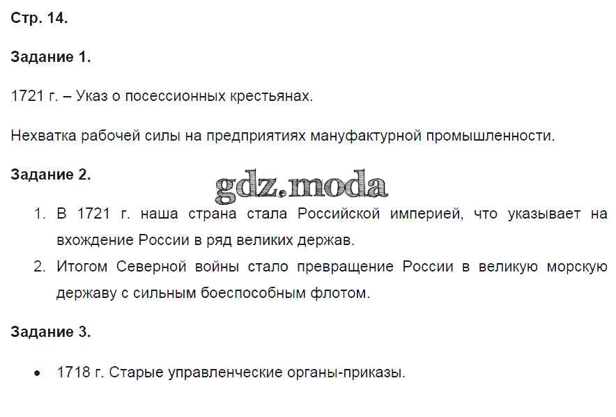 ГДЗ решение к заданию № 14 История 8 класс контрольные работы Артасов И.А. Просвещение 2016 ФГОС бесплатно на гдз.мода!