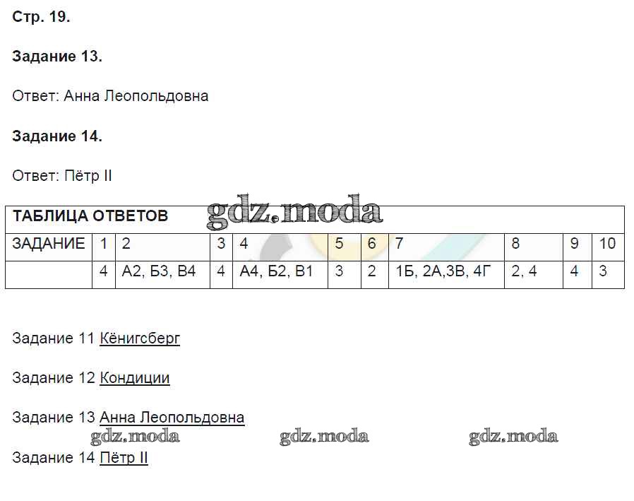 ГДЗ решение к заданию № 19 История 8 класс контрольные работы Артасов И.А. Просвещение 2016 ФГОС бесплатно на гдз.мода!
