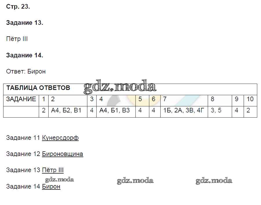 ГДЗ решение к заданию № 23 История 8 класс контрольные работы Артасов И.А. Просвещение 2016 ФГОС бесплатно на гдз.мода!