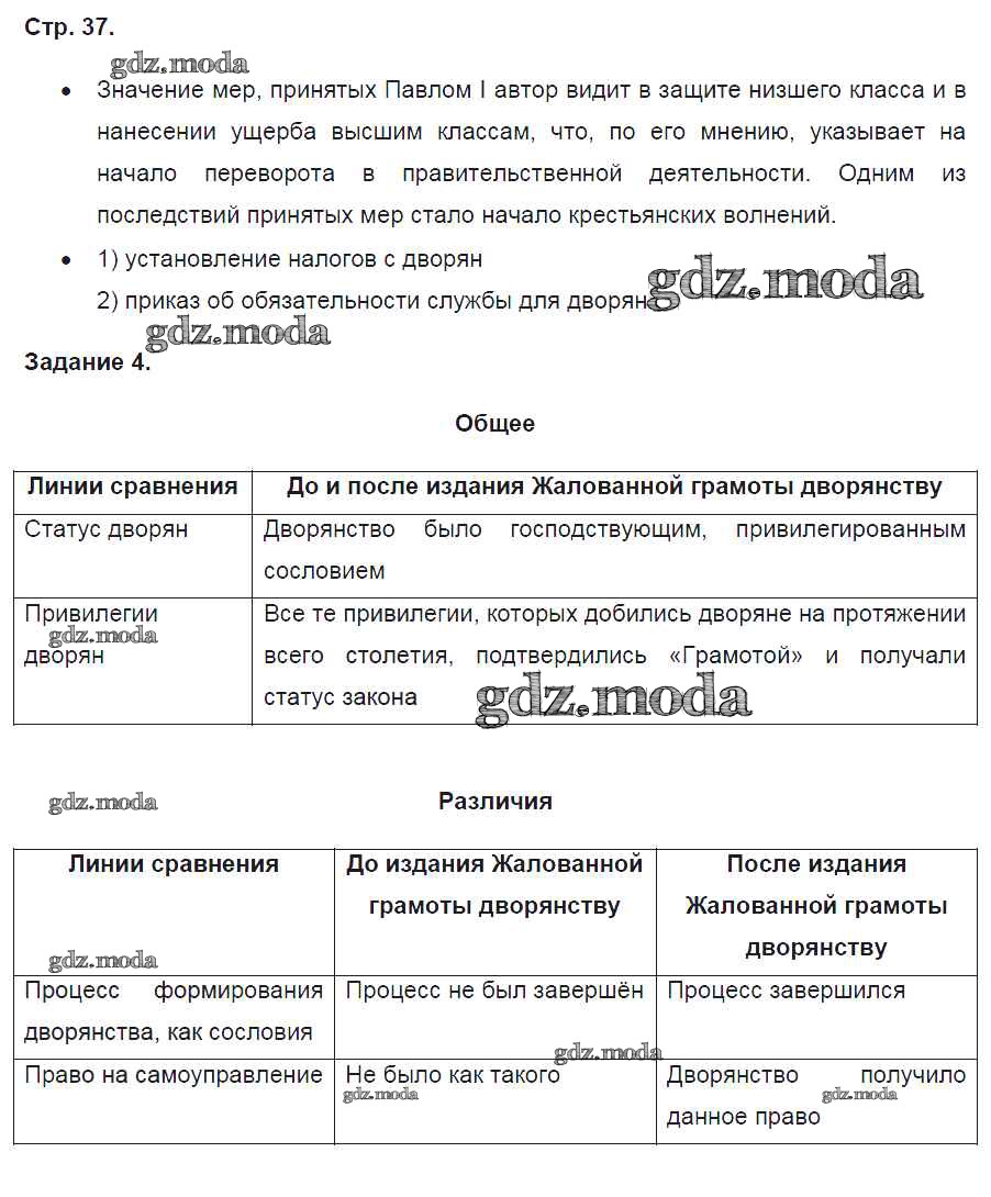 ГДЗ решение к заданию № 37 История 8 класс контрольные работы Артасов И.А. Просвещение 2016 ФГОС бесплатно на гдз.мода!