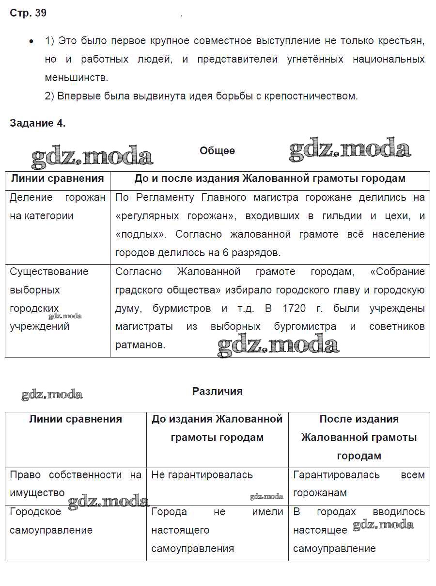 ГДЗ решение к заданию № 39 История 8 класс контрольные работы Артасов И.А. Просвещение 2016 ФГОС бесплатно на гдз.мода!