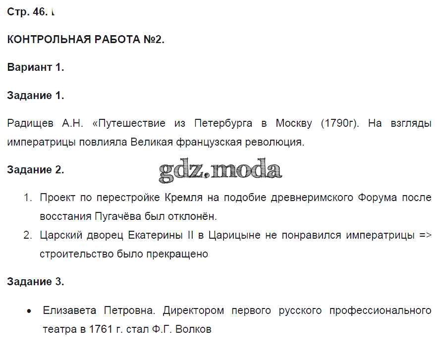 ГДЗ решение к заданию № 46 История 8 класс контрольные работы Артасов И.А. Просвещение 2016 ФГОС бесплатно на гдз.мода!