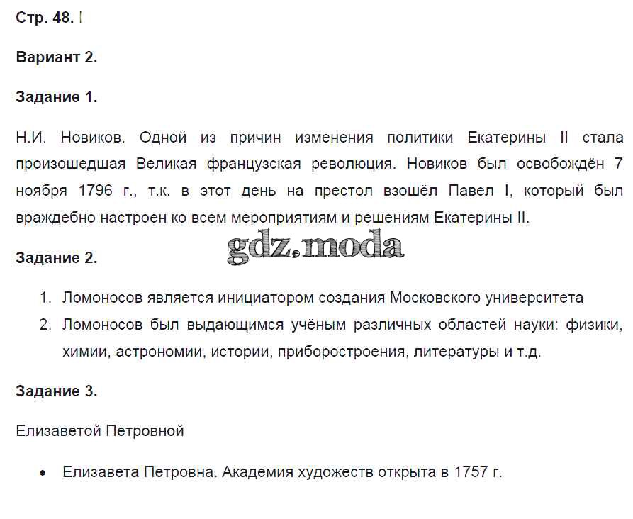 ГДЗ решение к заданию № 48 История 8 класс контрольные работы Артасов И.А. Просвещение 2016 ФГОС бесплатно на гдз.мода!