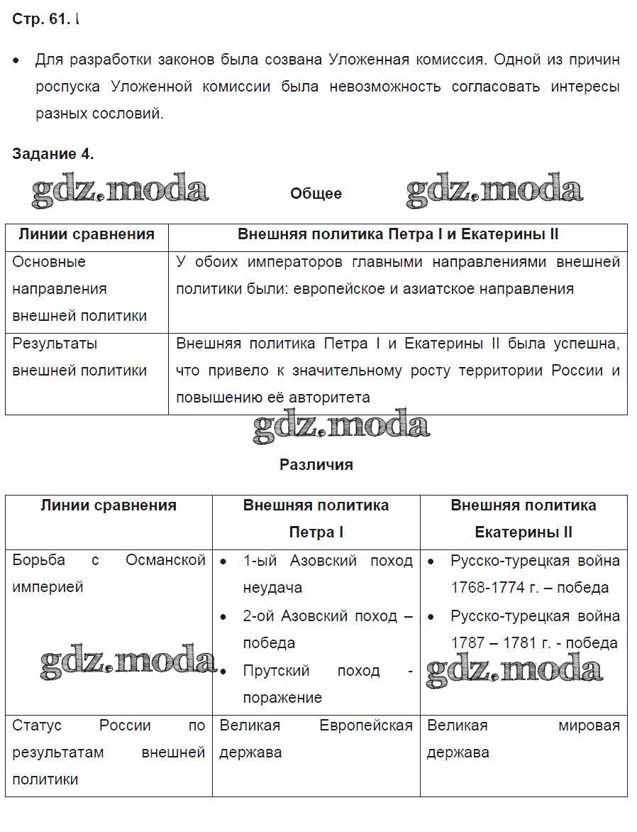 ГДЗ решение к заданию № 61 История 8 класс контрольные работы Артасов И.А. Просвещение 2016 ФГОС бесплатно на гдз.мода!