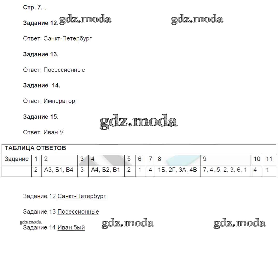 ГДЗ решение к заданию № 7 История 8 класс контрольные работы Артасов И.А. Просвещение 2016 ФГОС бесплатно на гдз.мода!