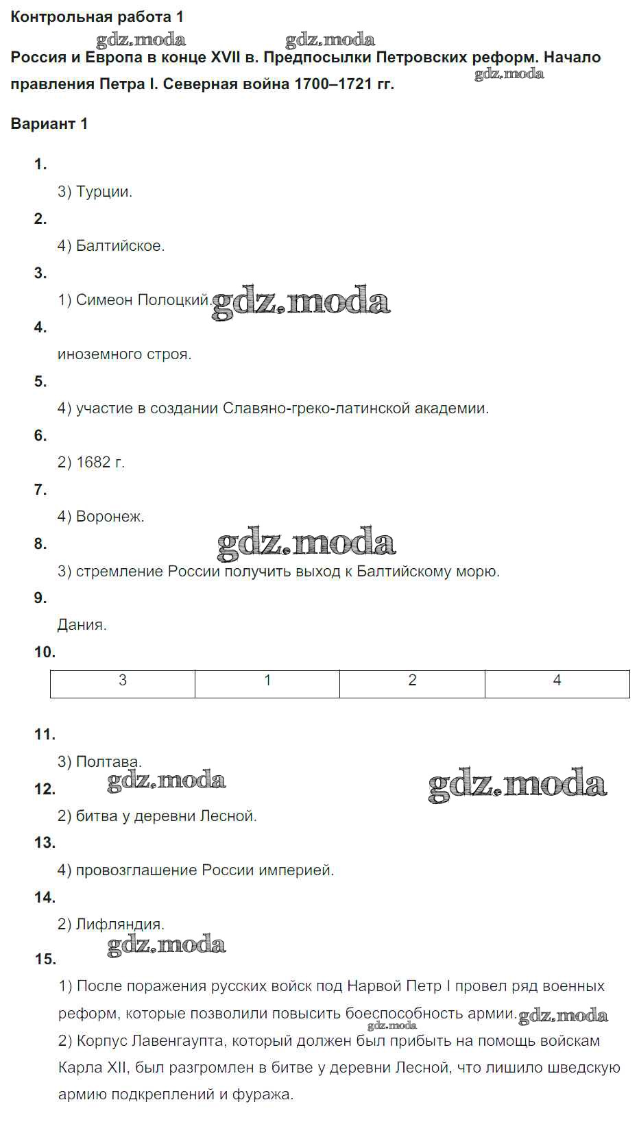 ГДЗ решение к заданию № 1 История России 8 класс контрольные работы Соловьёв Я.В. (к уч. Торкунова А.В.) Экзамен 2019 ФГОС бесплатно на гдз.мода!