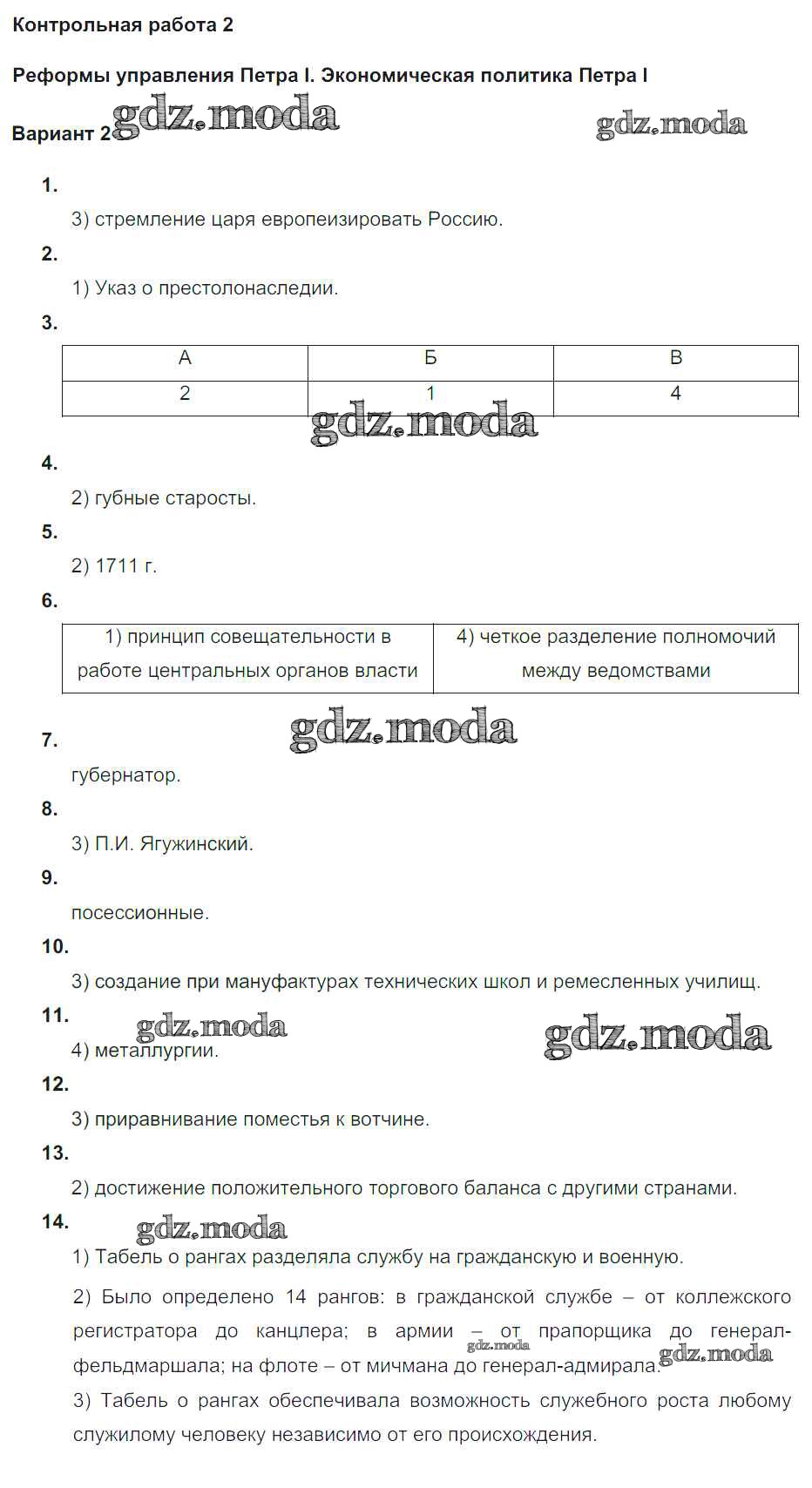 ГДЗ решение к заданию № 2 История России 8 класс контрольные работы Соловьёв Я.В. (к уч. Торкунова А.В.) Экзамен 2019 ФГОС бесплатно на гдз.мода!