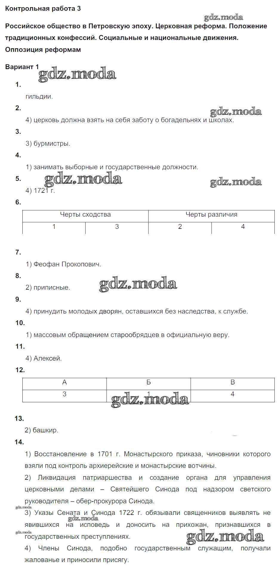 ГДЗ решение к заданию № 1 История России 8 класс контрольные работы Соловьёв Я.В. (к уч. Торкунова А.В.) Экзамен 2019 ФГОС бесплатно на гдз.мода!