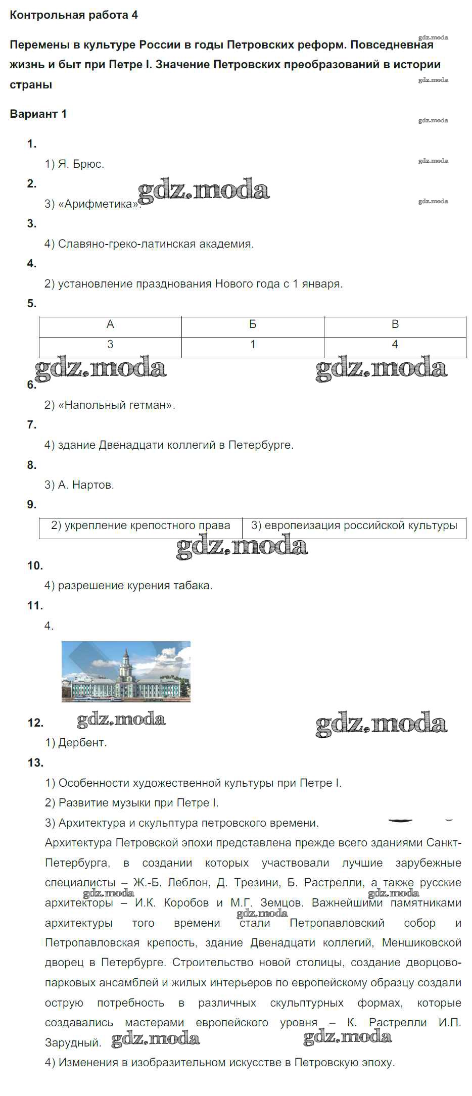 ГДЗ решение к заданию № 1 История России 8 класс контрольные работы Соловьёв Я.В. (к уч. Торкунова А.В.) Экзамен 2019 ФГОС бесплатно на гдз.мода!
