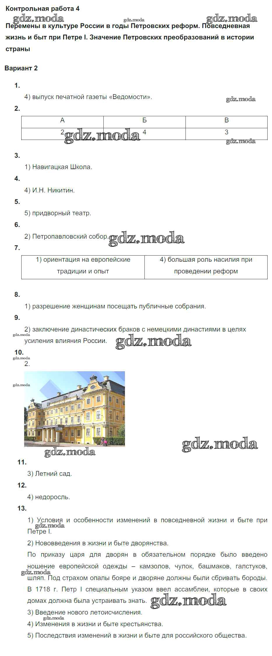 ГДЗ решение к заданию № 2 История России 8 класс контрольные работы Соловьёв Я.В. (к уч. Торкунова А.В.) Экзамен 2019 ФГОС бесплатно на гдз.мода!