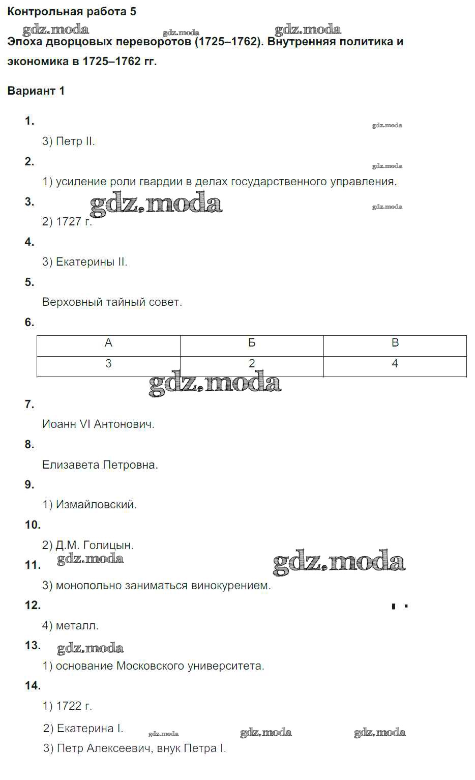 ГДЗ решение к заданию № 1 История России 8 класс контрольные работы Соловьёв Я.В. (к уч. Торкунова А.В.) Экзамен 2019 ФГОС бесплатно на гдз.мода!