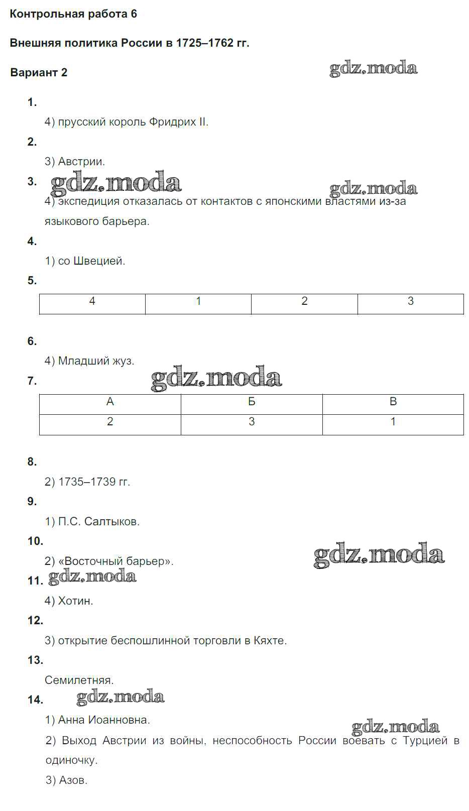 ГДЗ решение к заданию № 2 История России 8 класс контрольные работы Соловьёв Я.В. (к уч. Торкунова А.В.) Экзамен 2019 ФГОС бесплатно на гдз.мода!