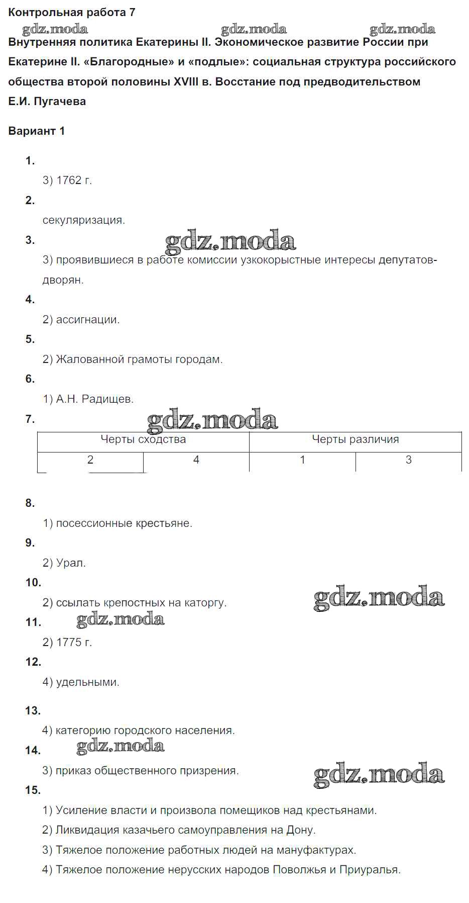 ГДЗ решение к заданию № 1 История России 8 класс контрольные работы Соловьёв Я.В. (к уч. Торкунова А.В.) Экзамен 2019 ФГОС бесплатно на гдз.мода!