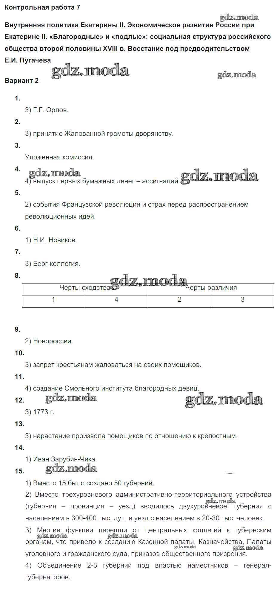 ГДЗ решение к заданию № 2 История России 8 класс контрольные работы Соловьёв Я.В. (к уч. Торкунова А.В.) Экзамен 2019 ФГОС бесплатно на гдз.мода!