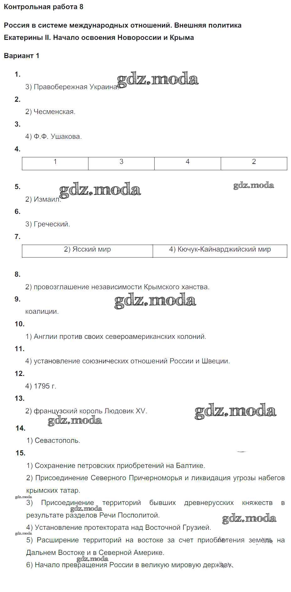 ГДЗ решение к заданию № 1 История России 8 класс контрольные работы Соловьёв Я.В. (к уч. Торкунова А.В.) Экзамен 2019 ФГОС бесплатно на гдз.мода!