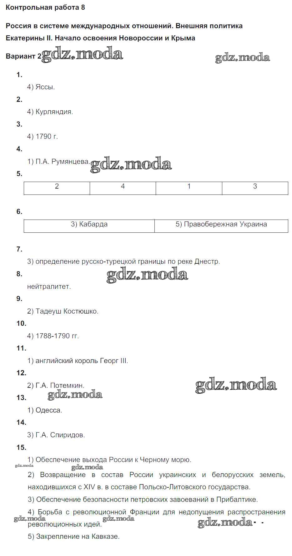 ГДЗ решение к заданию № 2 История России 8 класс контрольные работы Соловьёв Я.В. (к уч. Торкунова А.В.) Экзамен 2019 ФГОС бесплатно на гдз.мода!