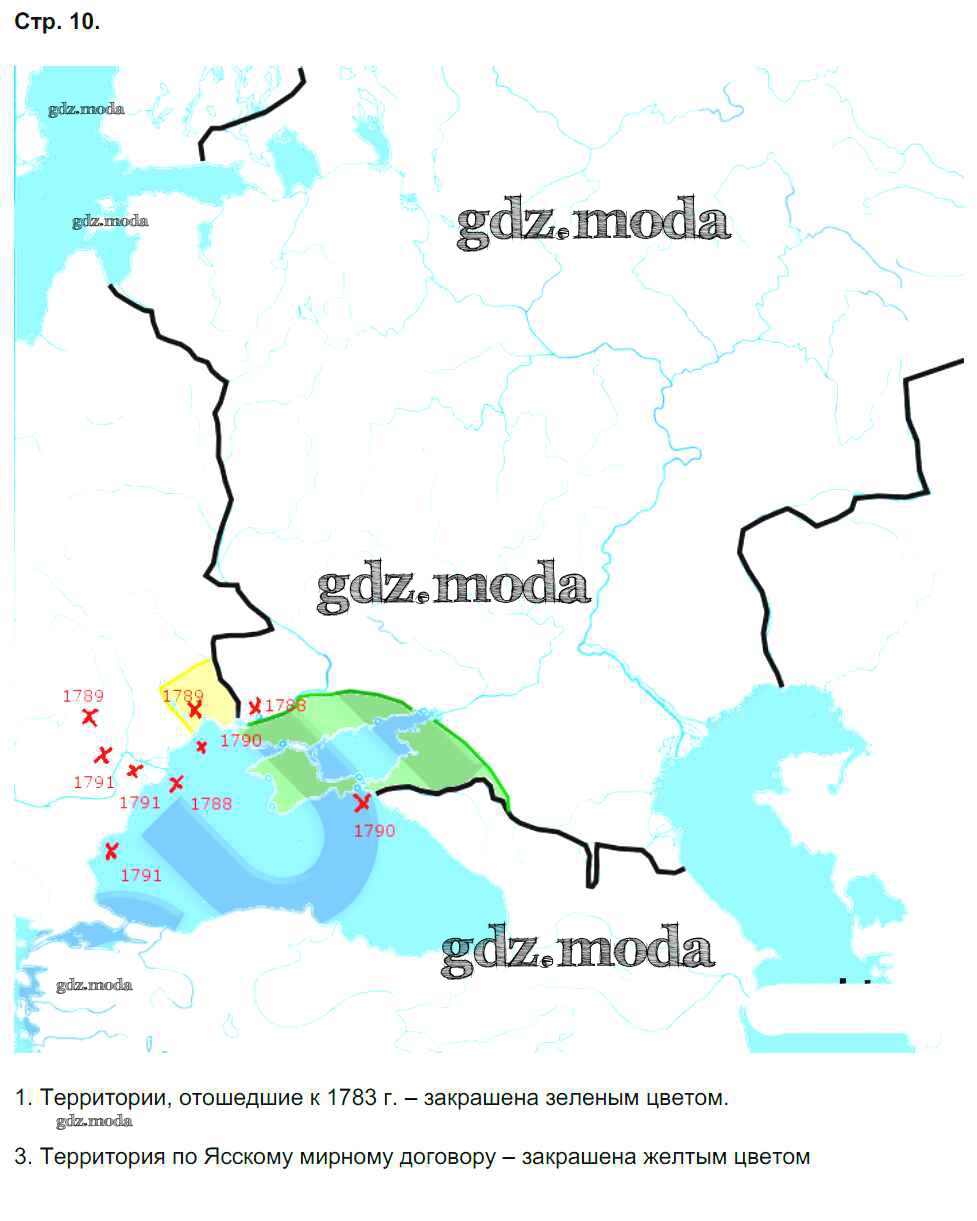 ГДЗ решение к заданию № 10 История России 8 класс контурные карты Павлова Н.В. (к уч. Торкунова А.В.) Экзамен 2019 ФГОС бесплатно на гдз.мода!
