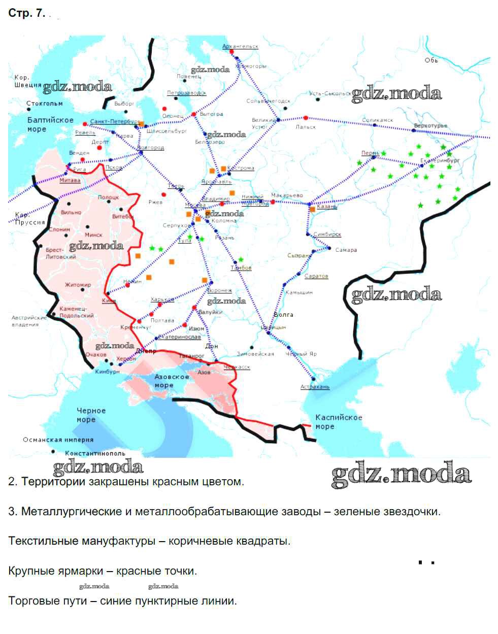 ГДЗ решение к заданию № 7 История России 8 класс контурные карты Павлова Н.В. (к уч. Торкунова А.В.) Экзамен 2019 ФГОС бесплатно на гдз.мода!